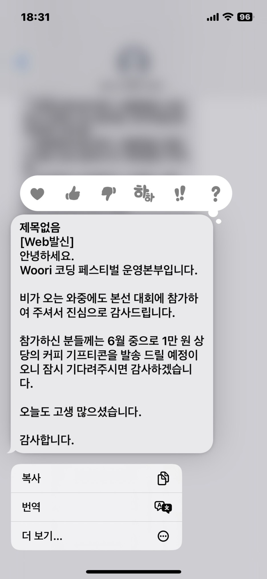갑자기 문자가옴