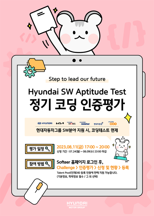 - 현대자동차, 기아, 현대모비스, 현대오토에버, 현대차증권, 현대엔지비 SW 분야 지원 시, 코딩테스트 면제