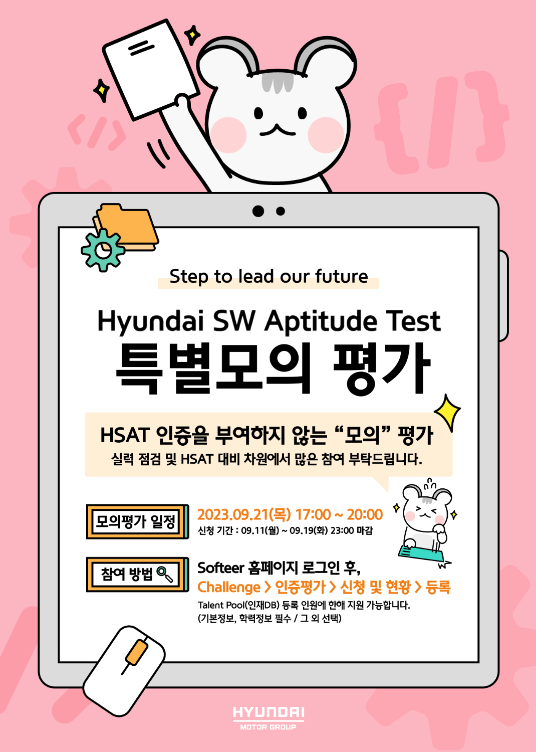 현대자동차그룹 sw 사이트에서 HSAT 특별모의평가가 진행이 됩니다.