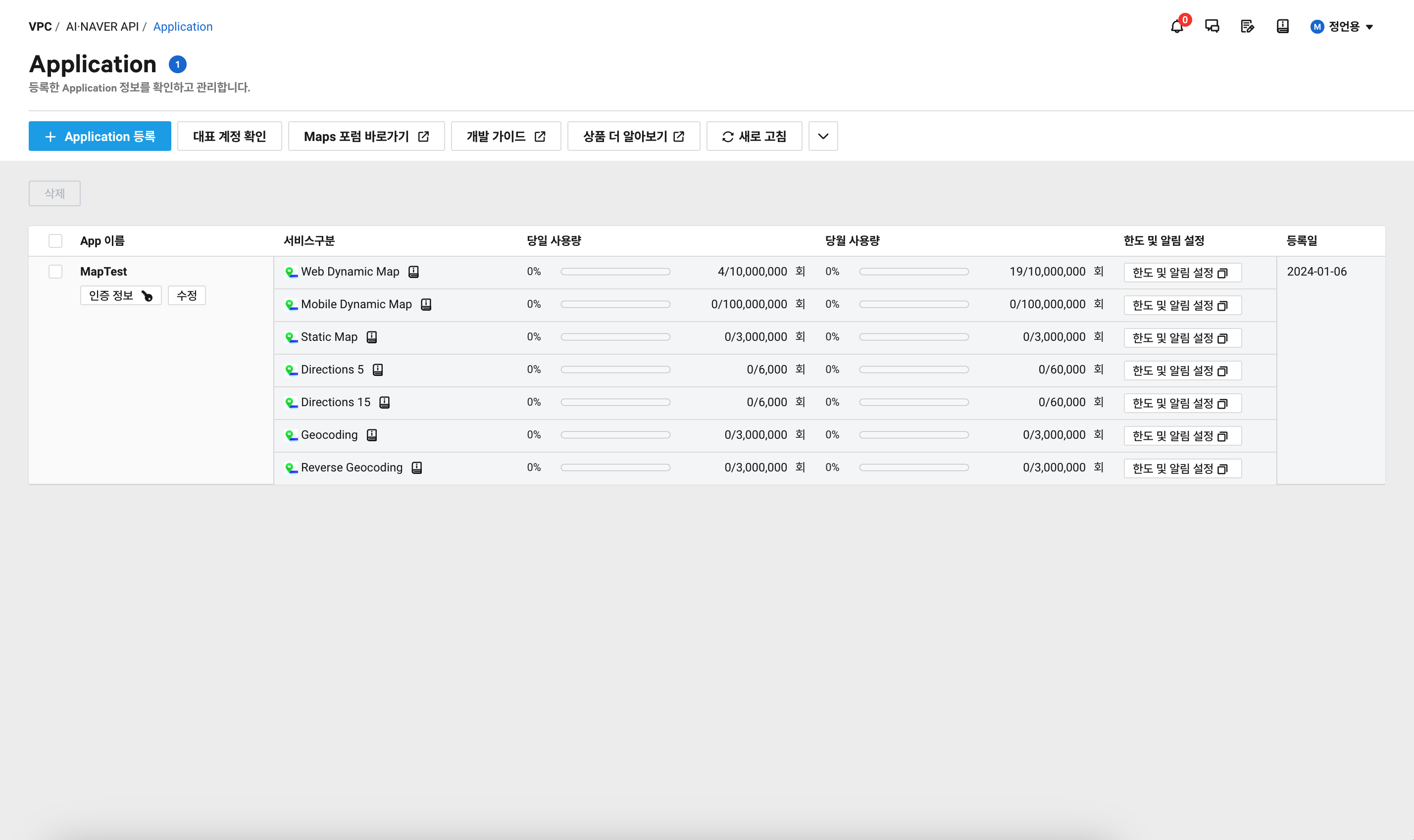 이제 우리는 클라이언트 아이디를 발급 받는데 대다수가 공공기관 및 금융기관이 아니기에콘솔의 AI·Application Service > AI·NAVER API > Application에서 애플리케이션을 등록합니다.