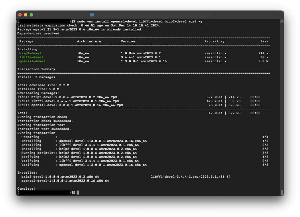 sudo yum install openssl-devel libffi-devel bzip2-devel wget -y
