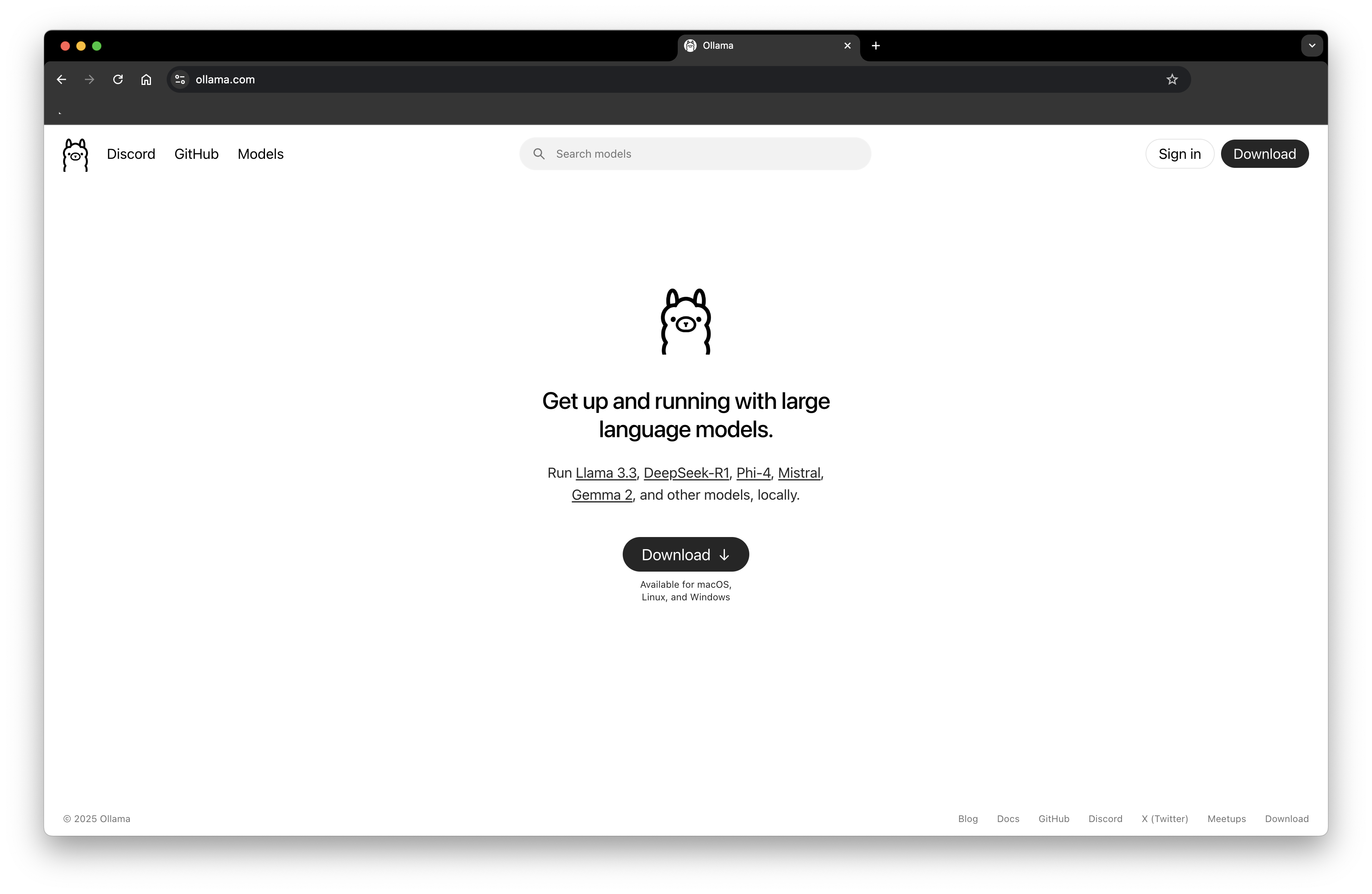 - Ollama 공식 사이트로 접속합니다.